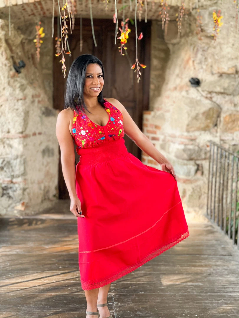 Perfection made it in this beautiful dress. Ixchel Diosa Maya – handcrafted + hand embroidered Oaxacan styke.