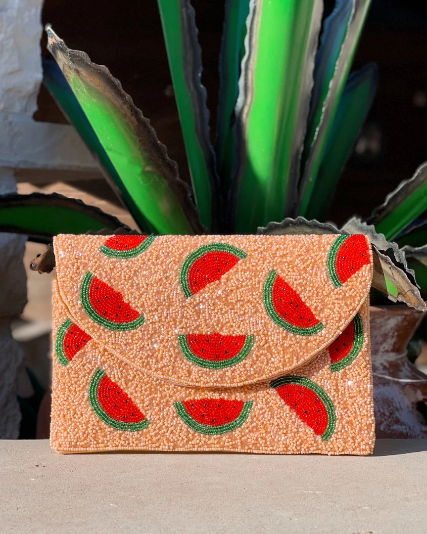 Stunning bead work on clutch. Clutch can also be used as a shoulder/ crossbody, chain included inside.