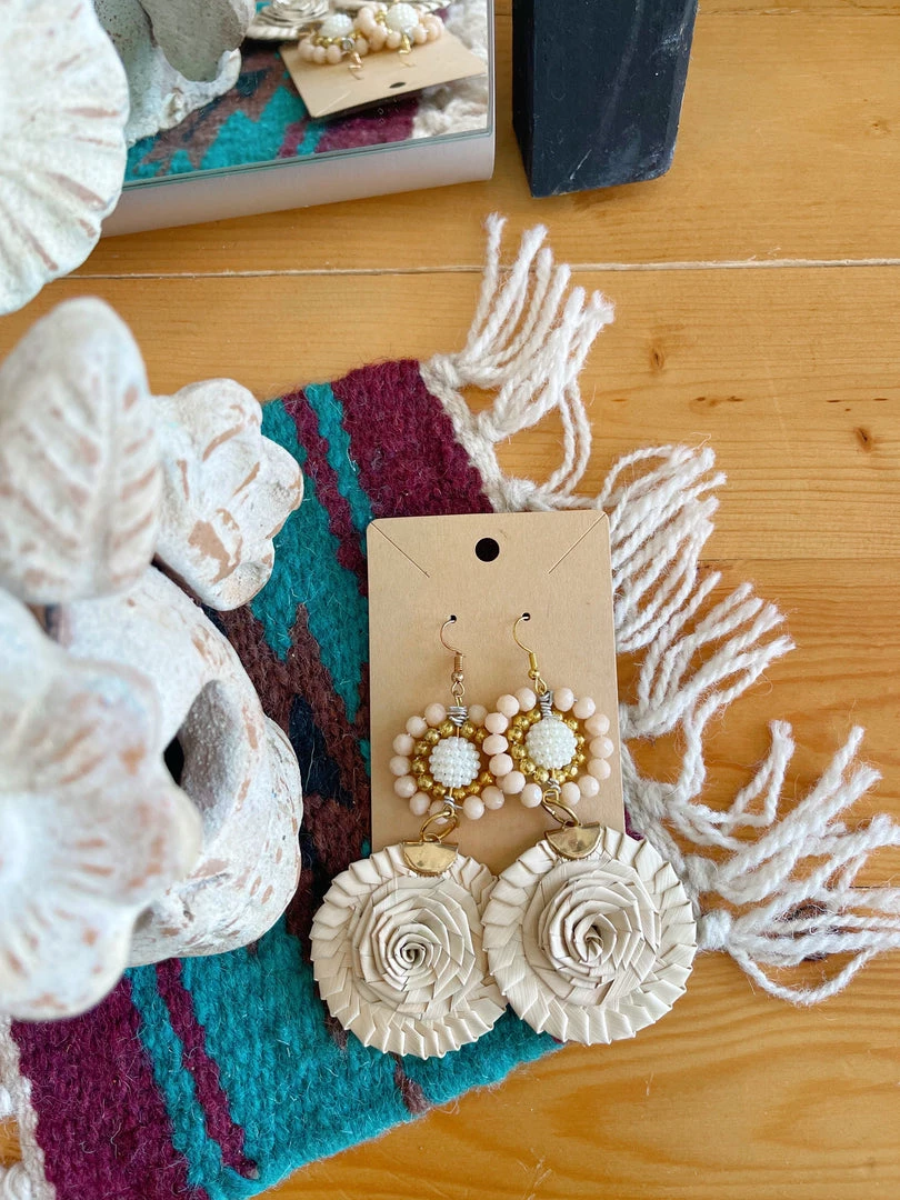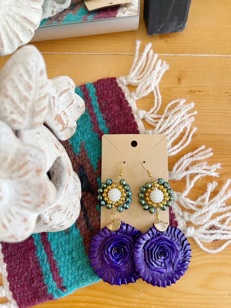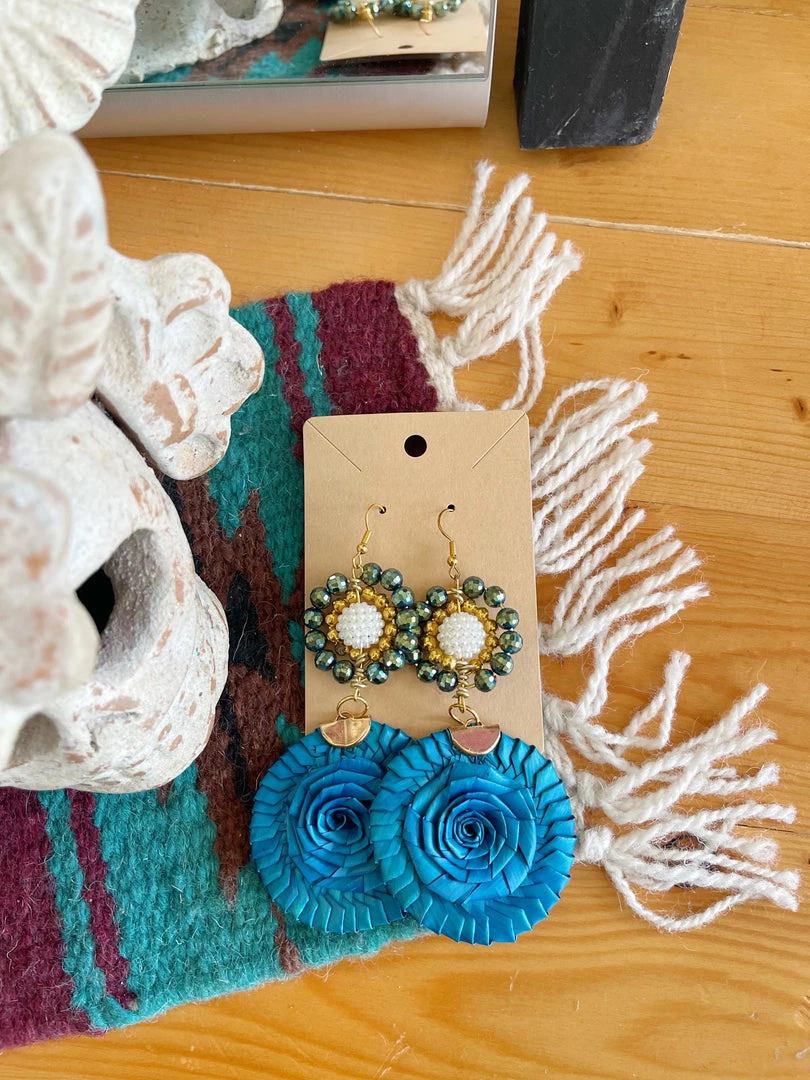 Palm leaf earrings made by hand. Natural dyes from fruits and vegetables, please expect imperfections.