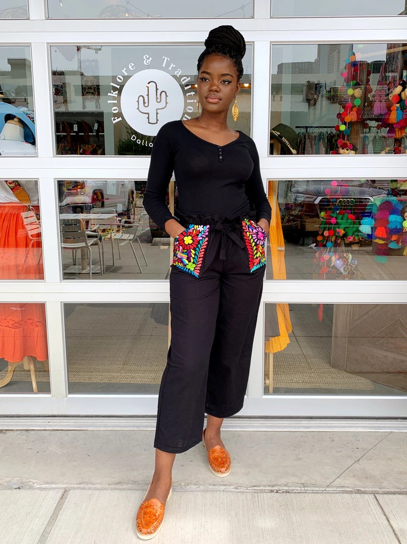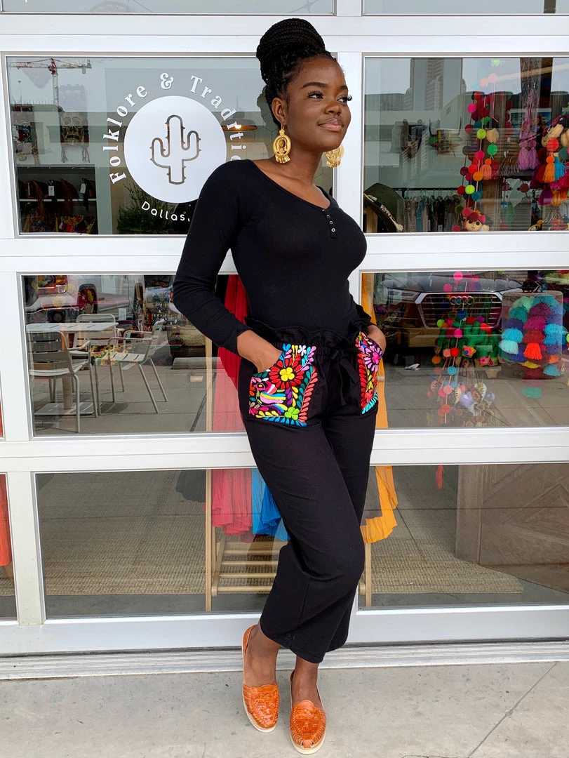 Our NEWEST pant design is finally here and it’s jaw dropping with beauty! Our pants have a handmade silk embroidery design throughout both front pockets as well as a scrunched elastic waist, finished off with a bow. This lovely beauty is a must have for your wardrobe!