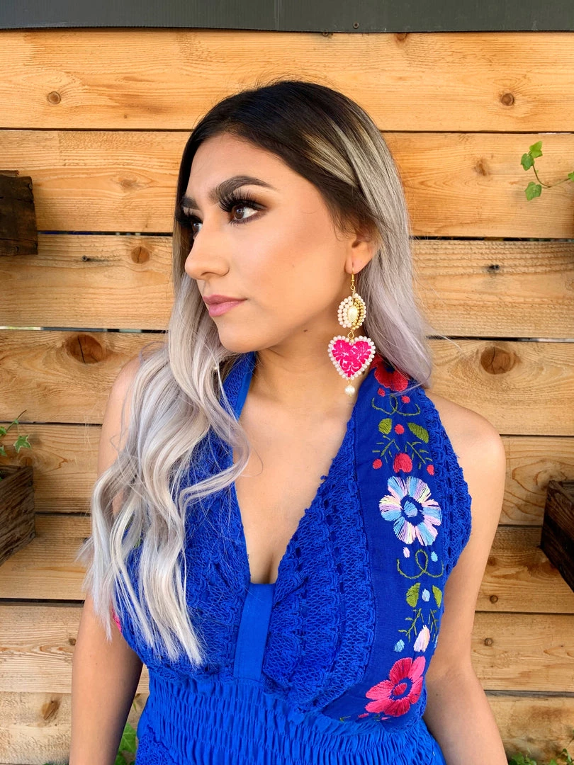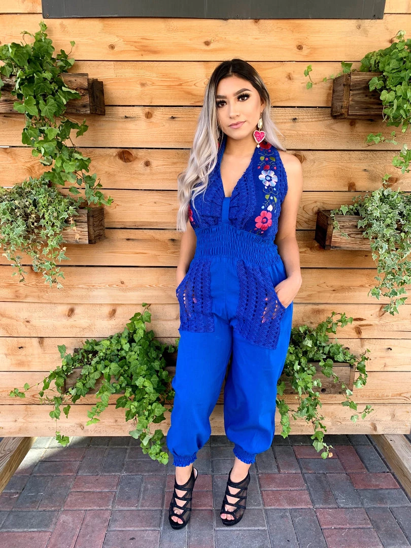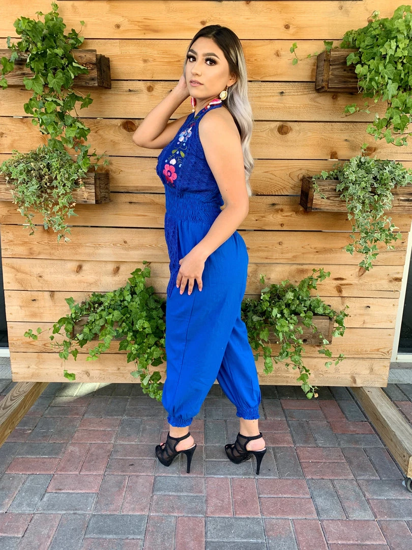 A funĀ floral jumper embroidered with bright cottonĀ thread over breathable linen and an elastic waist. The perfect jumper for summer time!