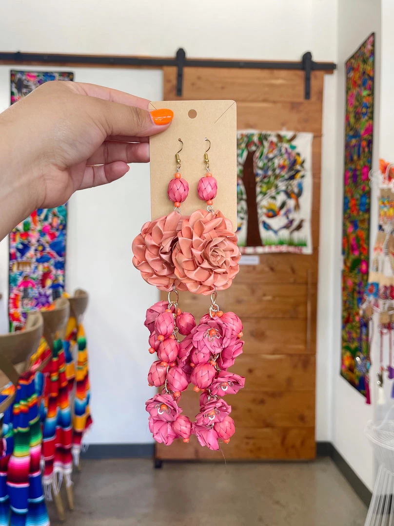 Palm leaf earrings made by hand. Natural dyes from fruits and vegetables, please expect imperfections.