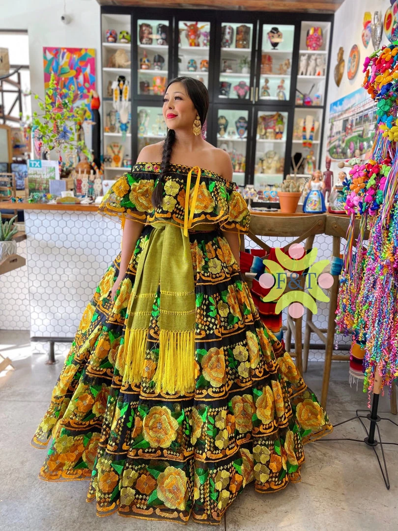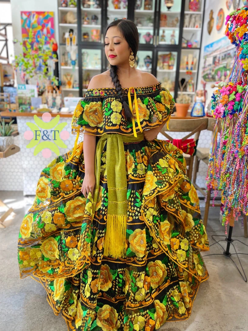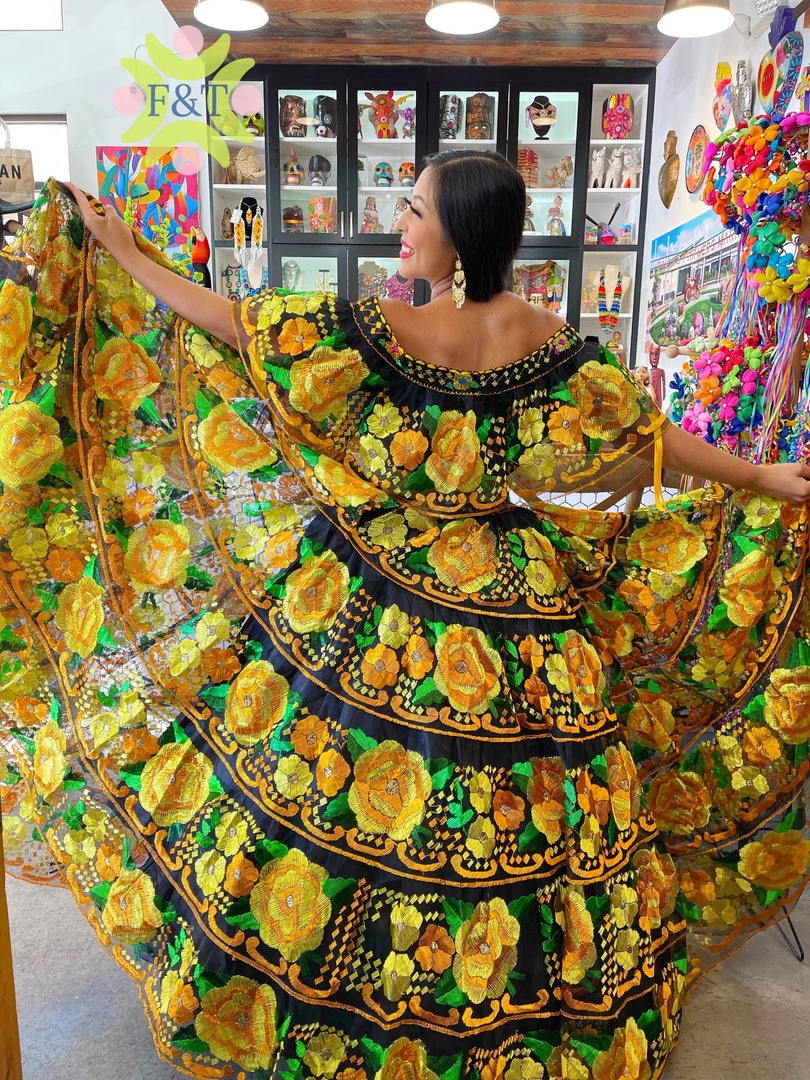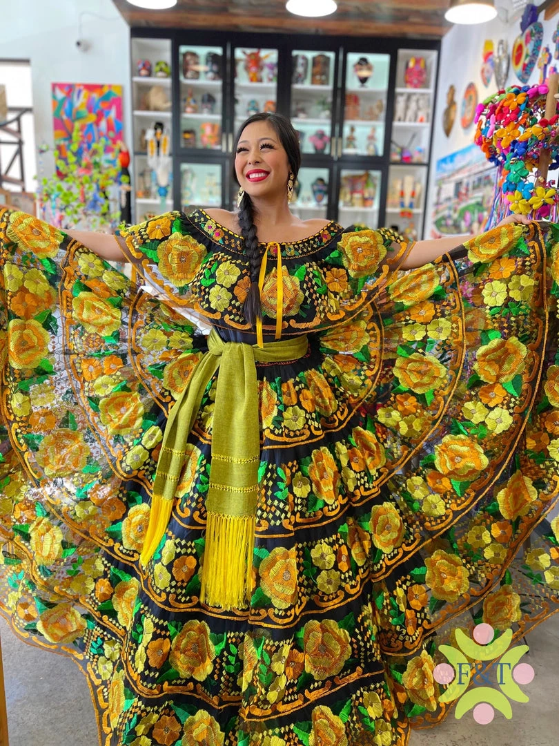 Professional Chiapa de Corso fiesta dress, Â handmade embroidery in silk tread.