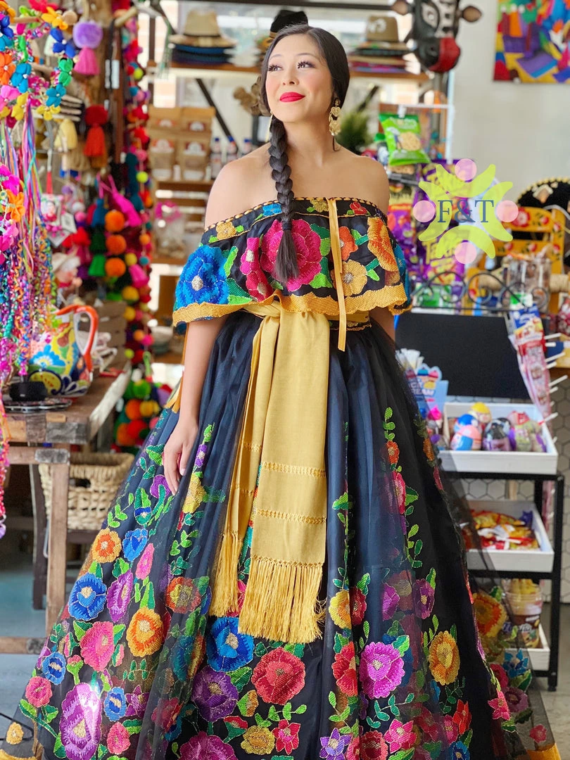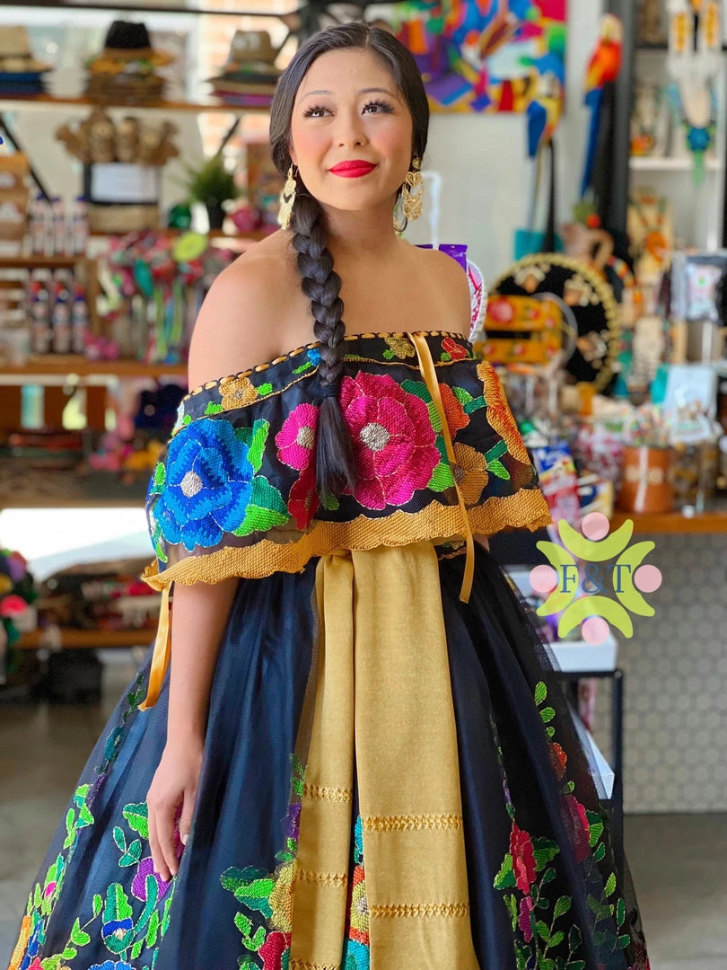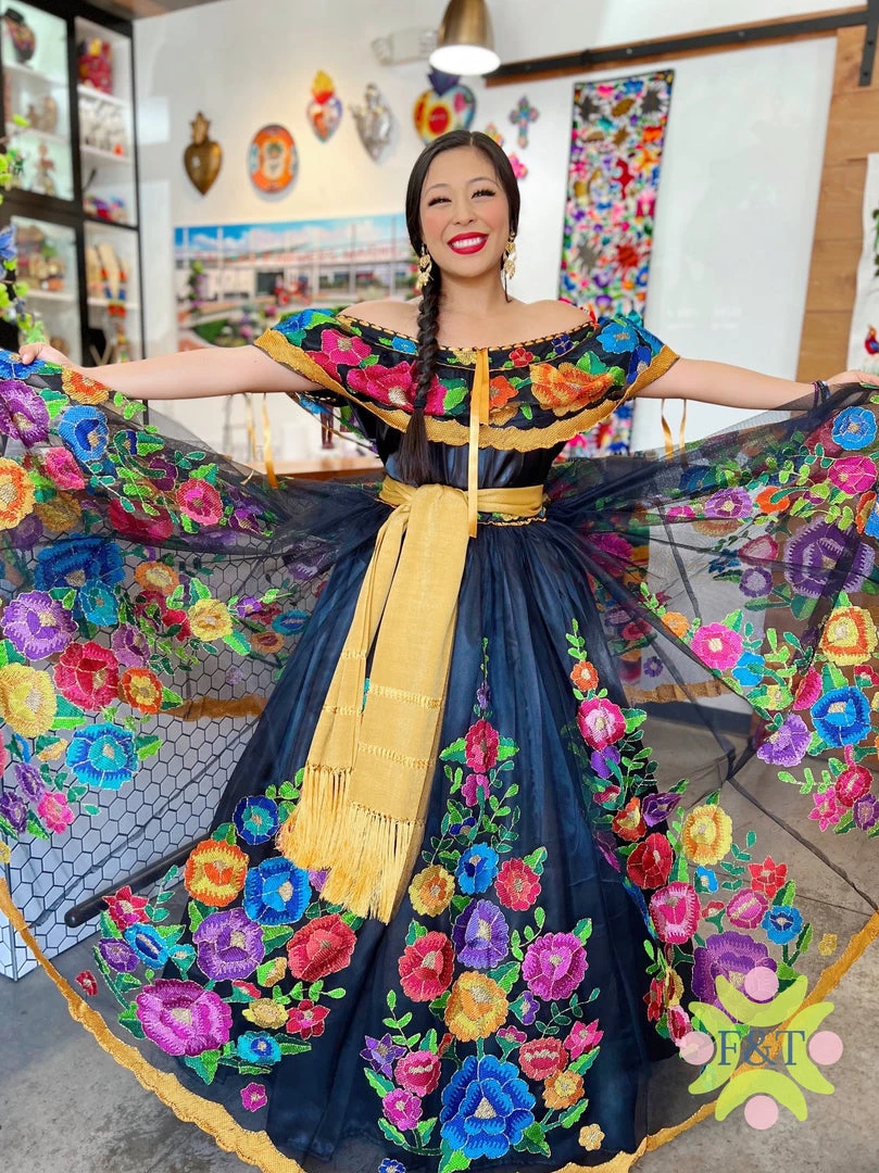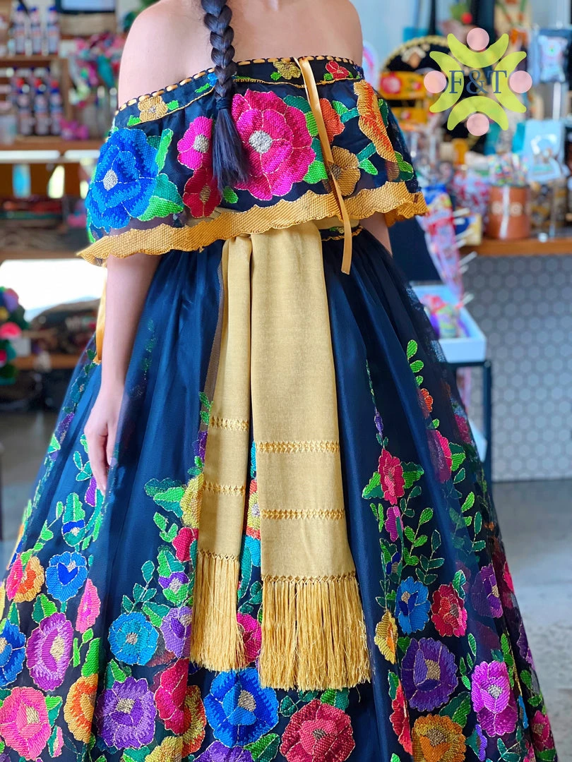 The most beautiful petatillo embroidery technique in silk tread, this beautiful dress was made in ooak specialty style.