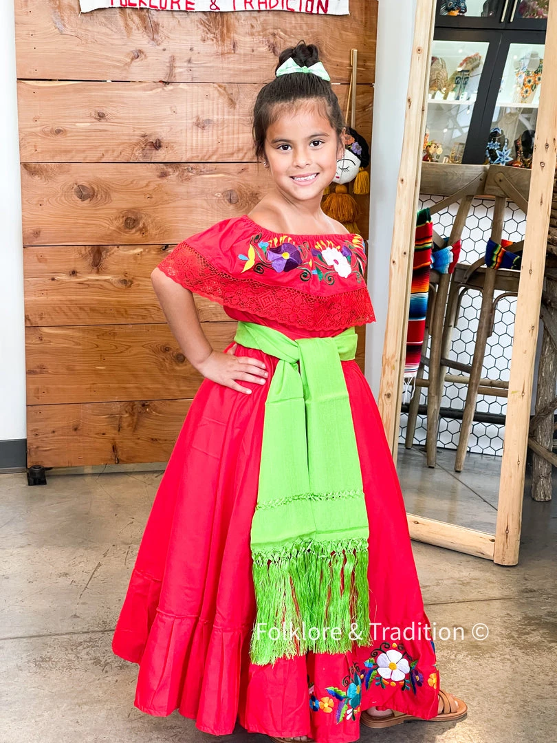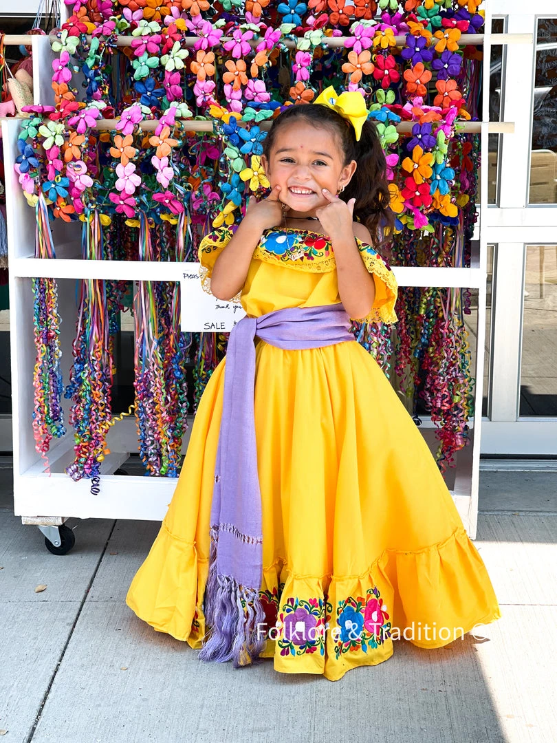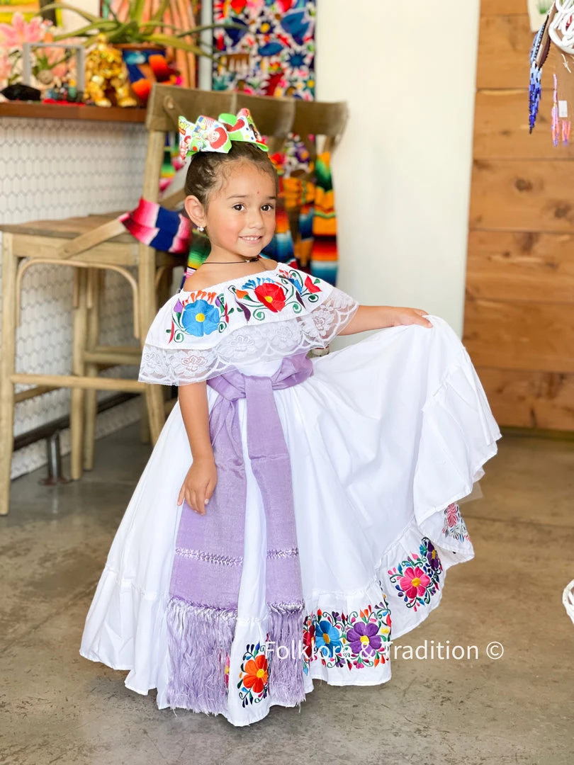 Two piece set, includes off shoulder top and long embroidered skirt.