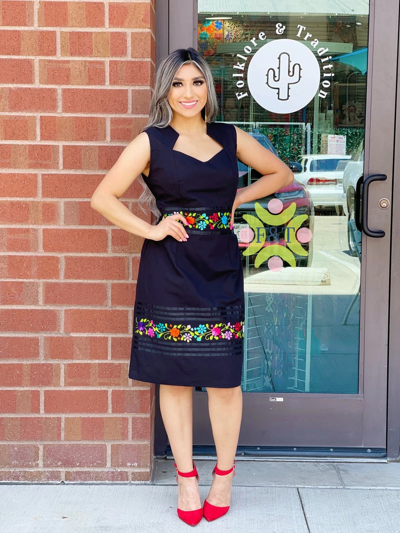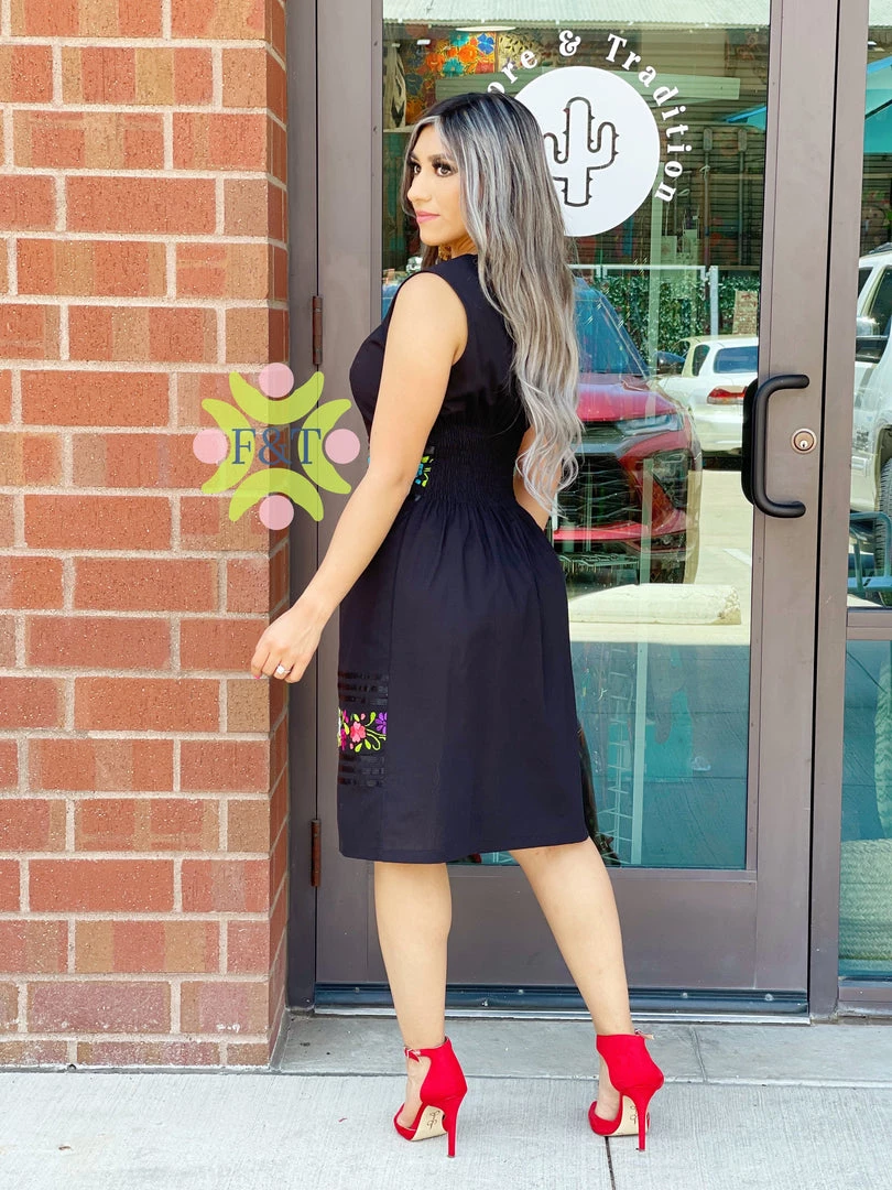 Beautiful dress handmade with silk embroidery throughout the waist and bottom trim finished with ribbon and elastic on the back.
