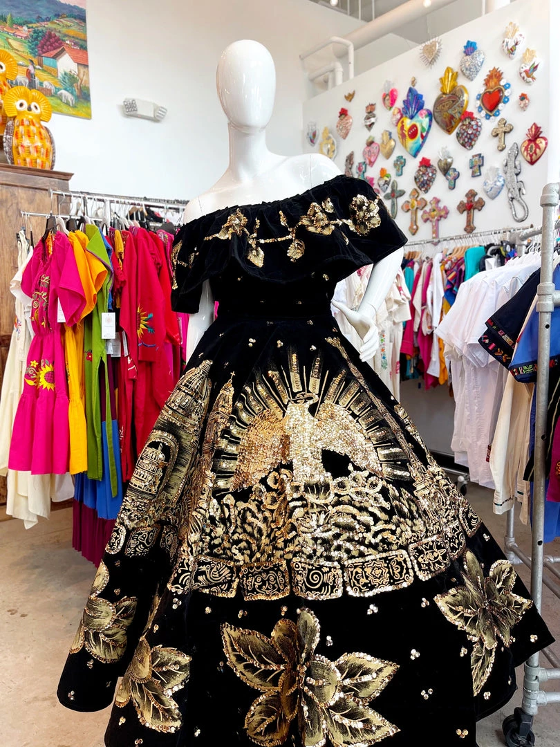 This dress is stunning with velvet fabric topped off with a delicate sparkly design.