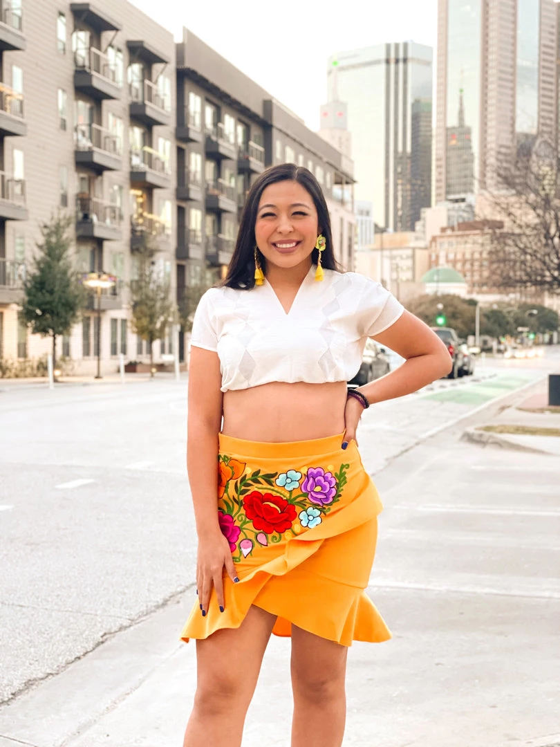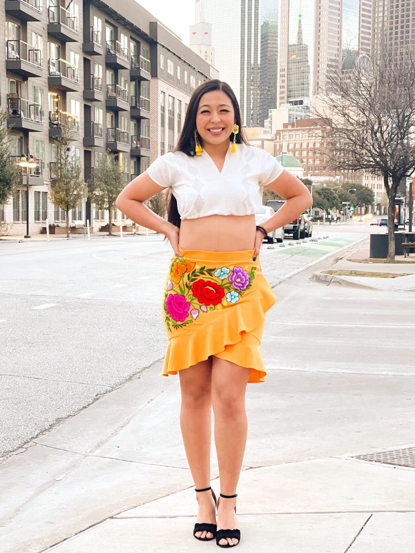 Cute ruffled floral skirt perfect for any occasion, stretchy material. Expect variation in embroidery.