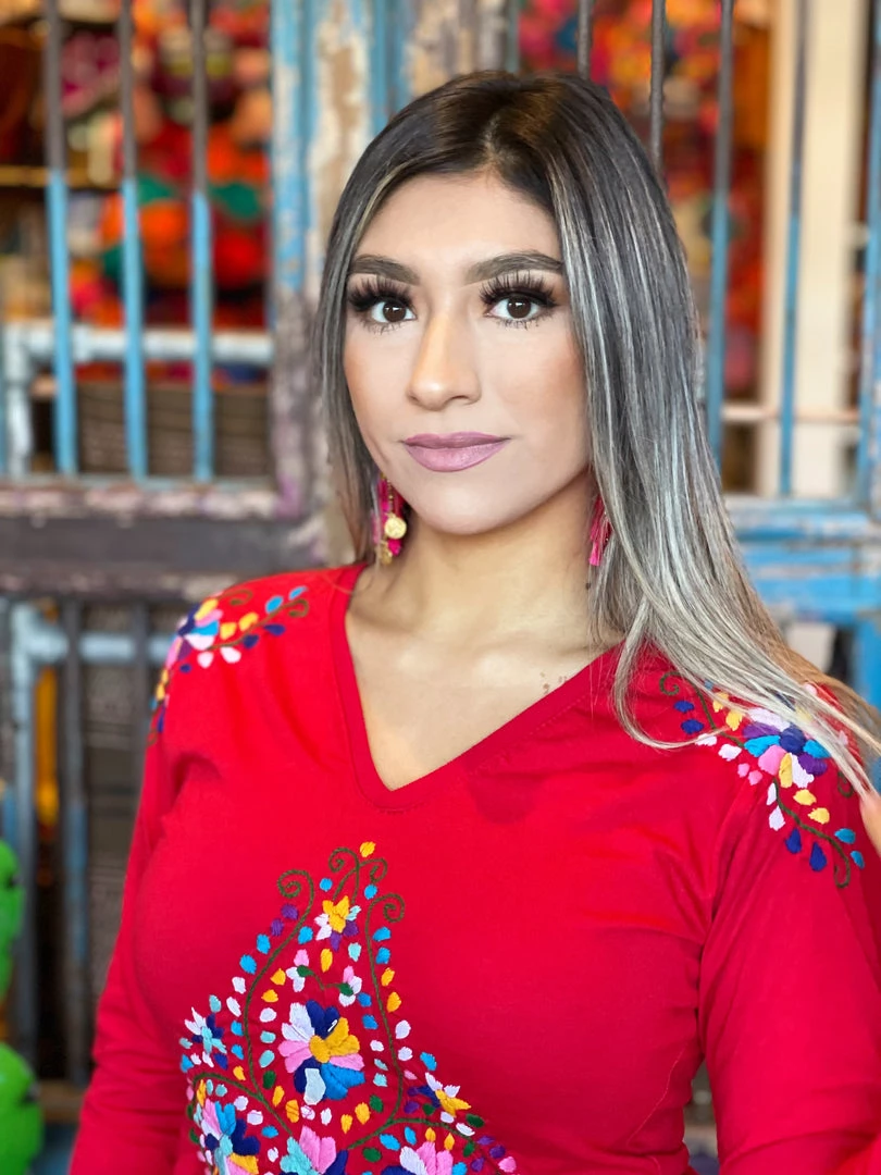 All tops have one of a kind embroidery. Expect variation in embroidery design, placement, and color. These are handmade pieces, none are exactly the same.