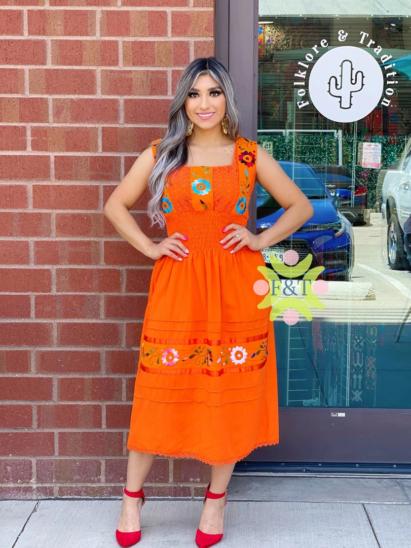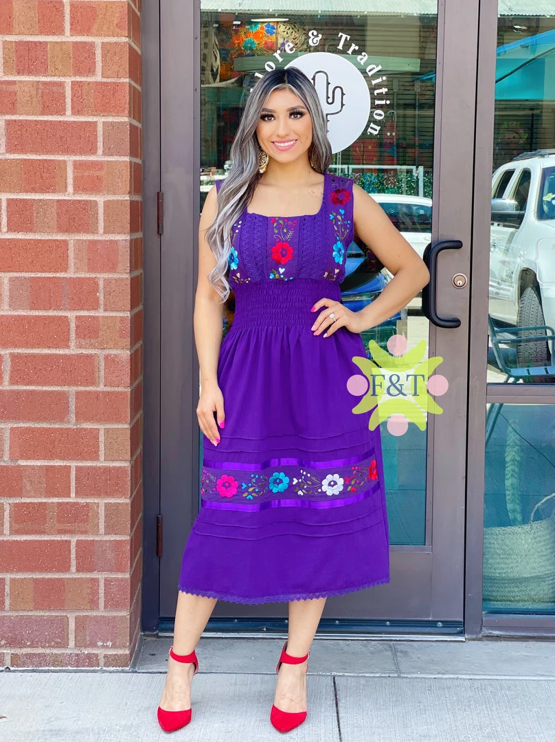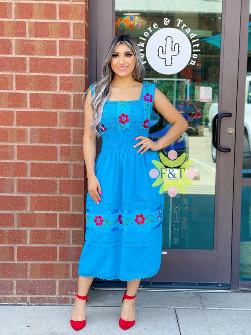 Beautiful traditional dress with a squared neckline, handmade silk embroidery, lace, and elastic – an absolute show stopper!