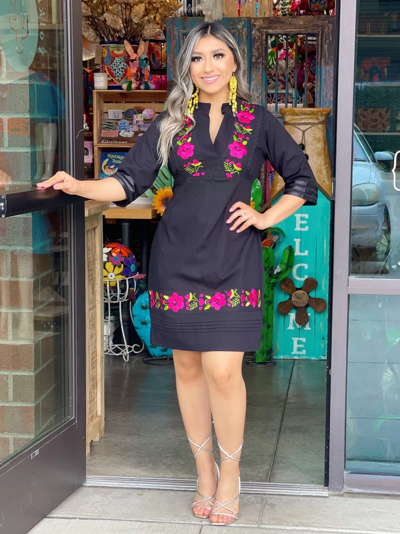 *Black dress with fuchsia embroidery is only available in size: Small, all others are considered multicolored embroidery as shown in the other photos for this item.*