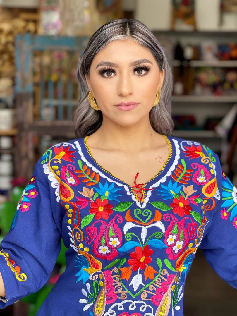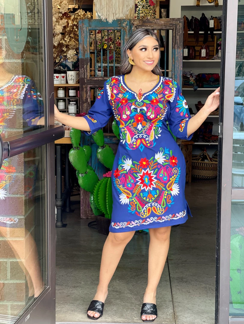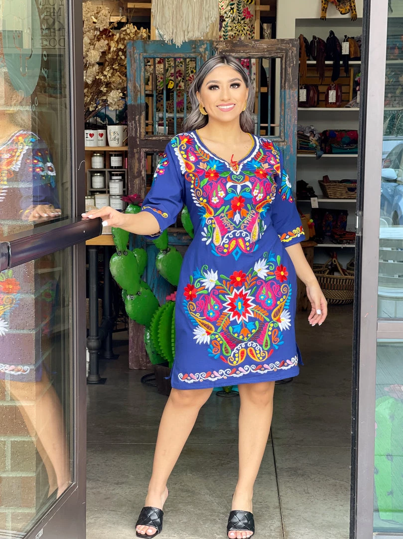One of a kind embroidered mid-sleeve dress, perfect for any time of day!